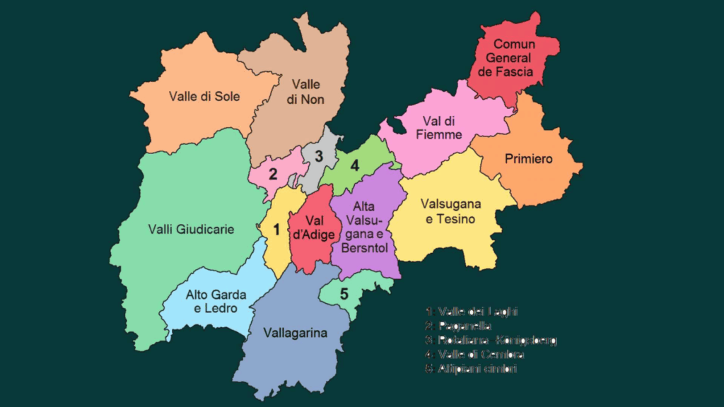 Nicht alle der 16 Täler des Trentino haben sich der Initiative angeschlossen. Insgesamt beteiligen sich 32 Gemeinden am Projekt der Autonomen Provinz Trient, darunter Orte wie Frassilongo im Valle del Fersina, Terragnolo in der Vallagarina oder Mazzano im Primiero.